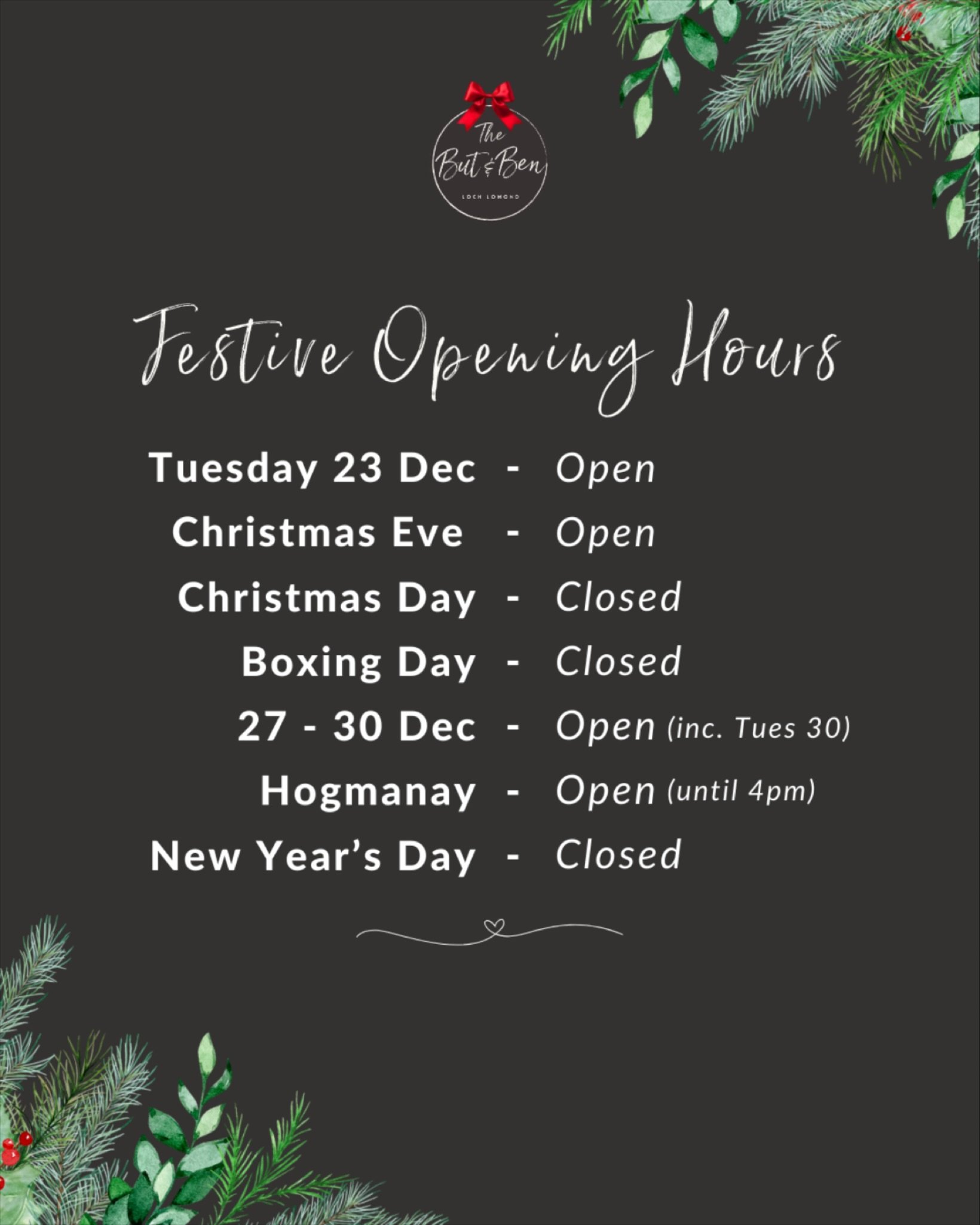 Monday, Wednesday, Thursday, Friday 9am - 4pm (closed Tuesdayβs)